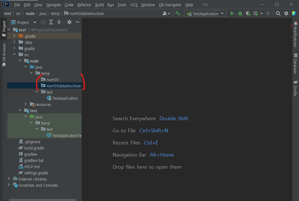 I created the package 03datastruct under the temp directory, then I can't choose the java class file in that package.