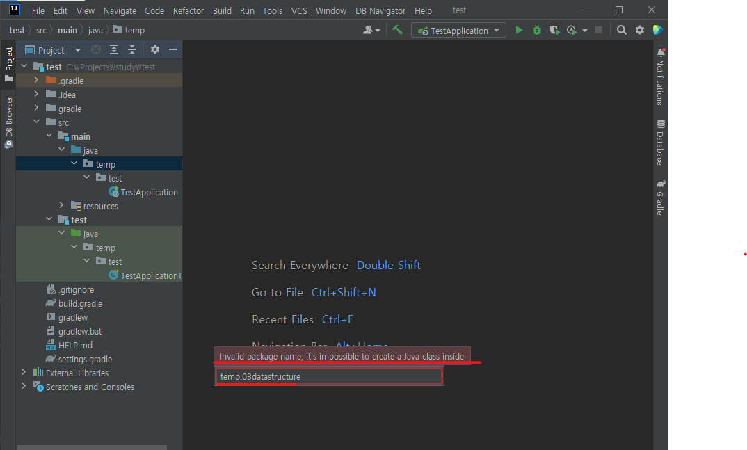 besides, IDE warned me when I create the package name like this screenshot